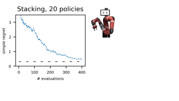 We demonstrated this procedure in a number of environments in several domains: dm-control, Atari, simulated, and real robotics. Using A-OPS reduces the regret rapidly, and with a moderate number of policy evaluations, we identify the best policy.