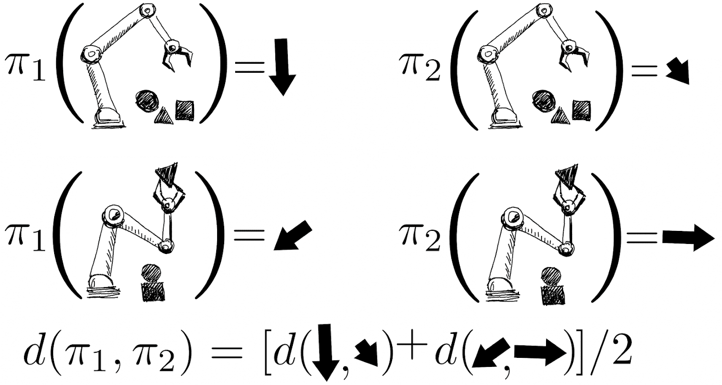 Similarity between the policies is modelled through the distance between the actions these policies produce.