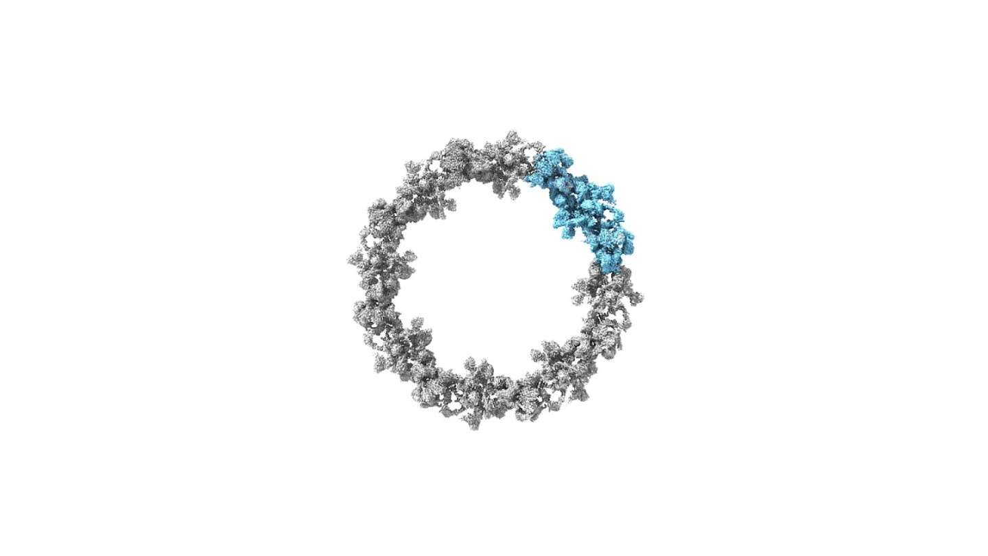 Model of the nuclear pore complex cytoplasmic ring. Credit: Fontana et al. Science 2022