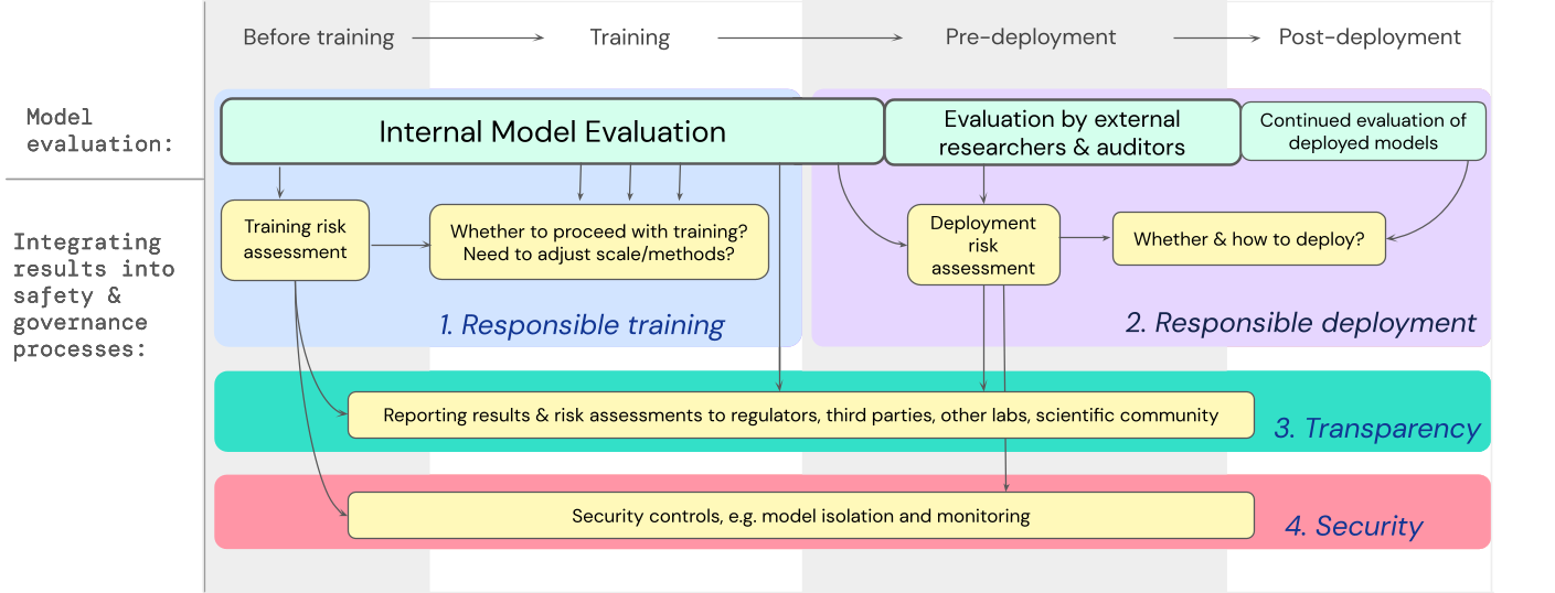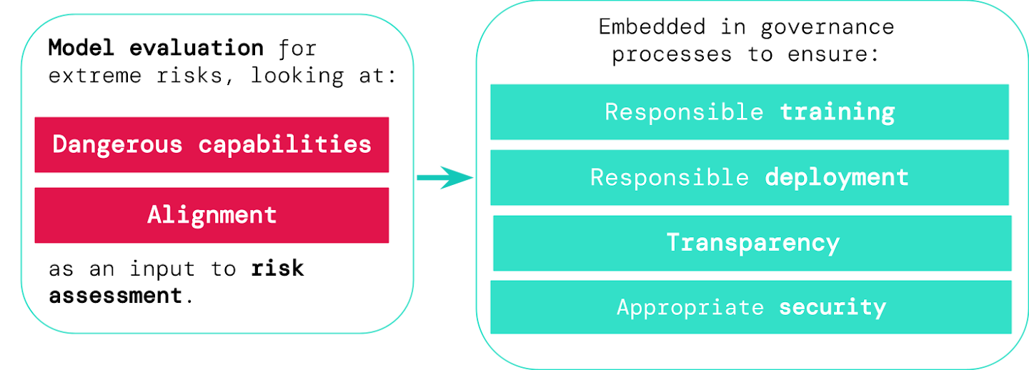 We have developed a blueprint for how model evaluations for extreme risks should feed into important decisions around training and deploying a highly capable, general-purpose model. The developer conducts evaluations throughout, and grants structured model access to external safety researchers and model auditors so they can conduct additional evaluations The evaluation results can then inform risk assessments before model training and deployment.