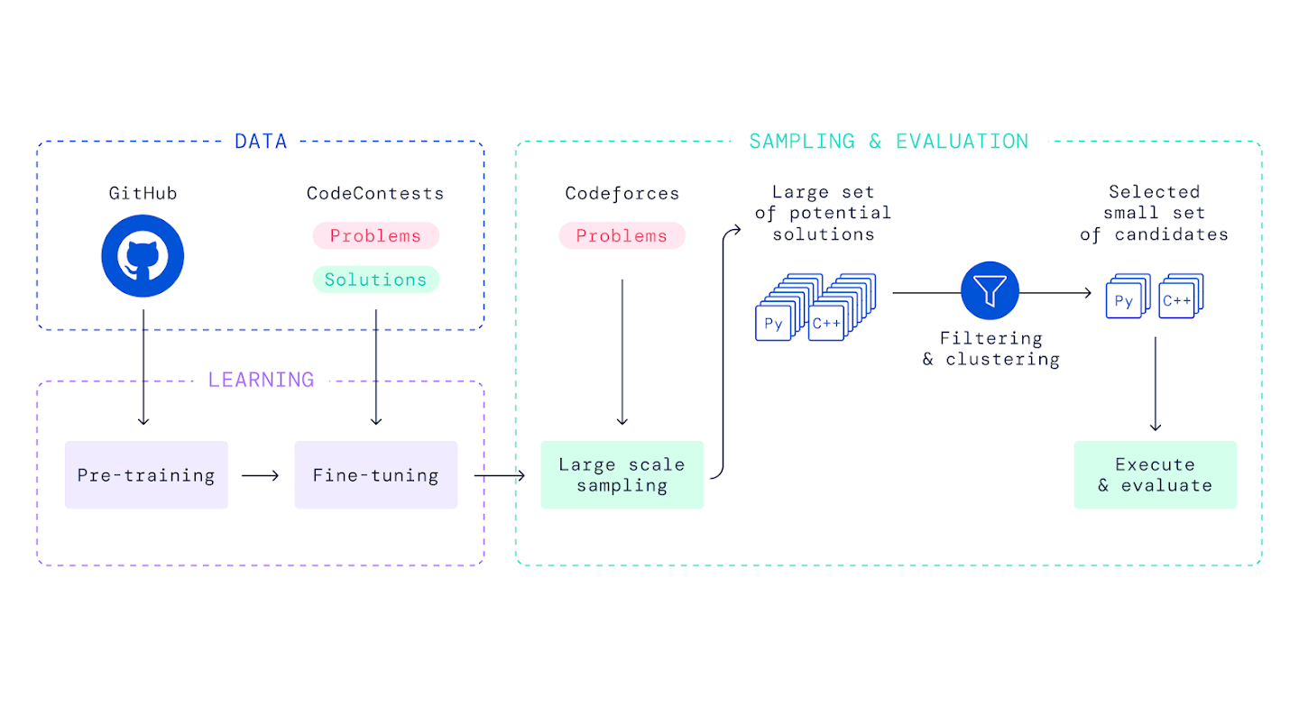 The problem-solving abilities required to excel at these competitions are beyond the capabilities of existing AI systems. However, by combining advances in large-scale transformer models (that have recently shown promising abilities to generate code) with large-scale sampling and filtering, we’ve made significant progress in the number of problems we can solve. We pre-train our model on selected public GitHub code and fine-tune it on our relatively small competitive programming dataset.