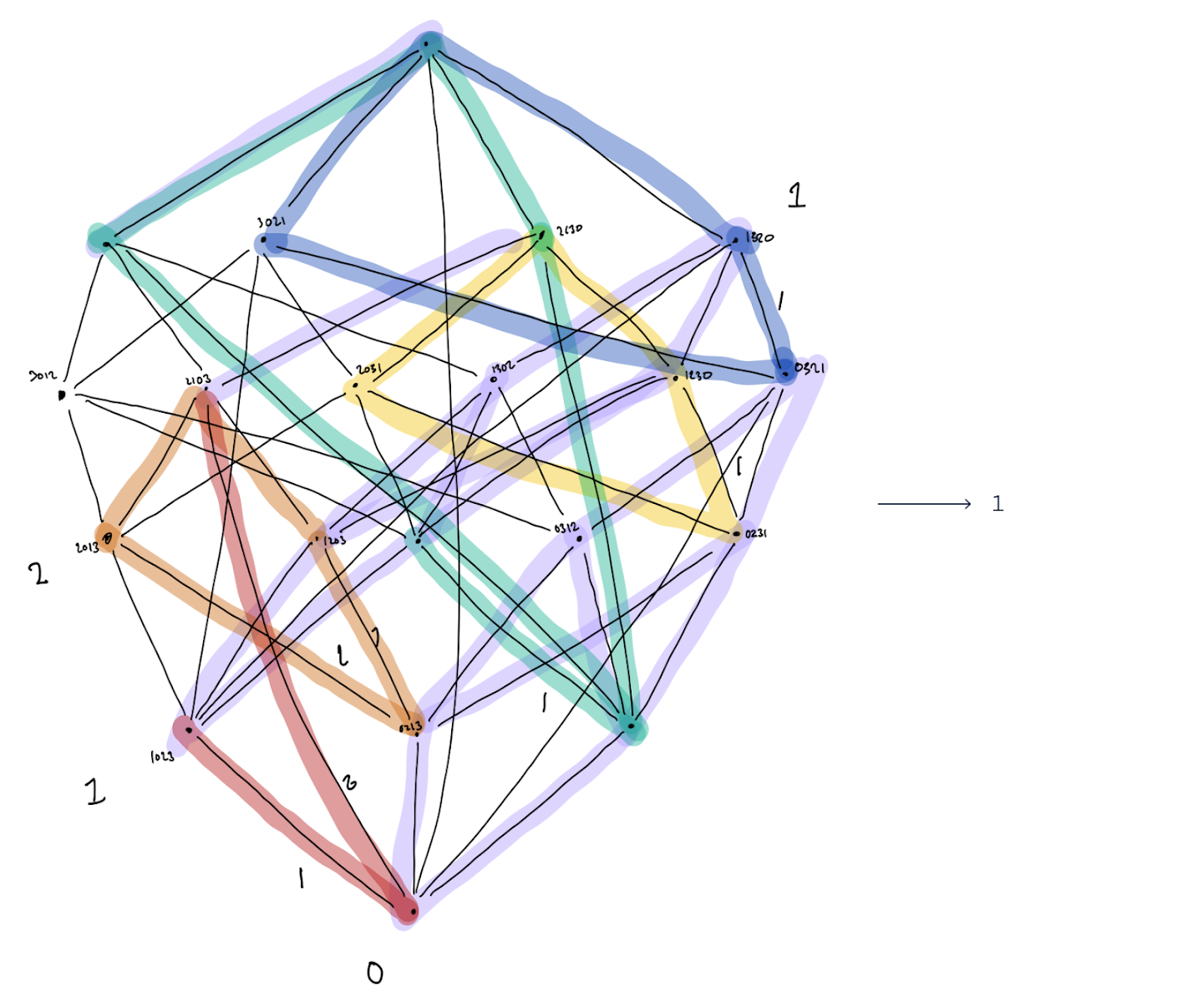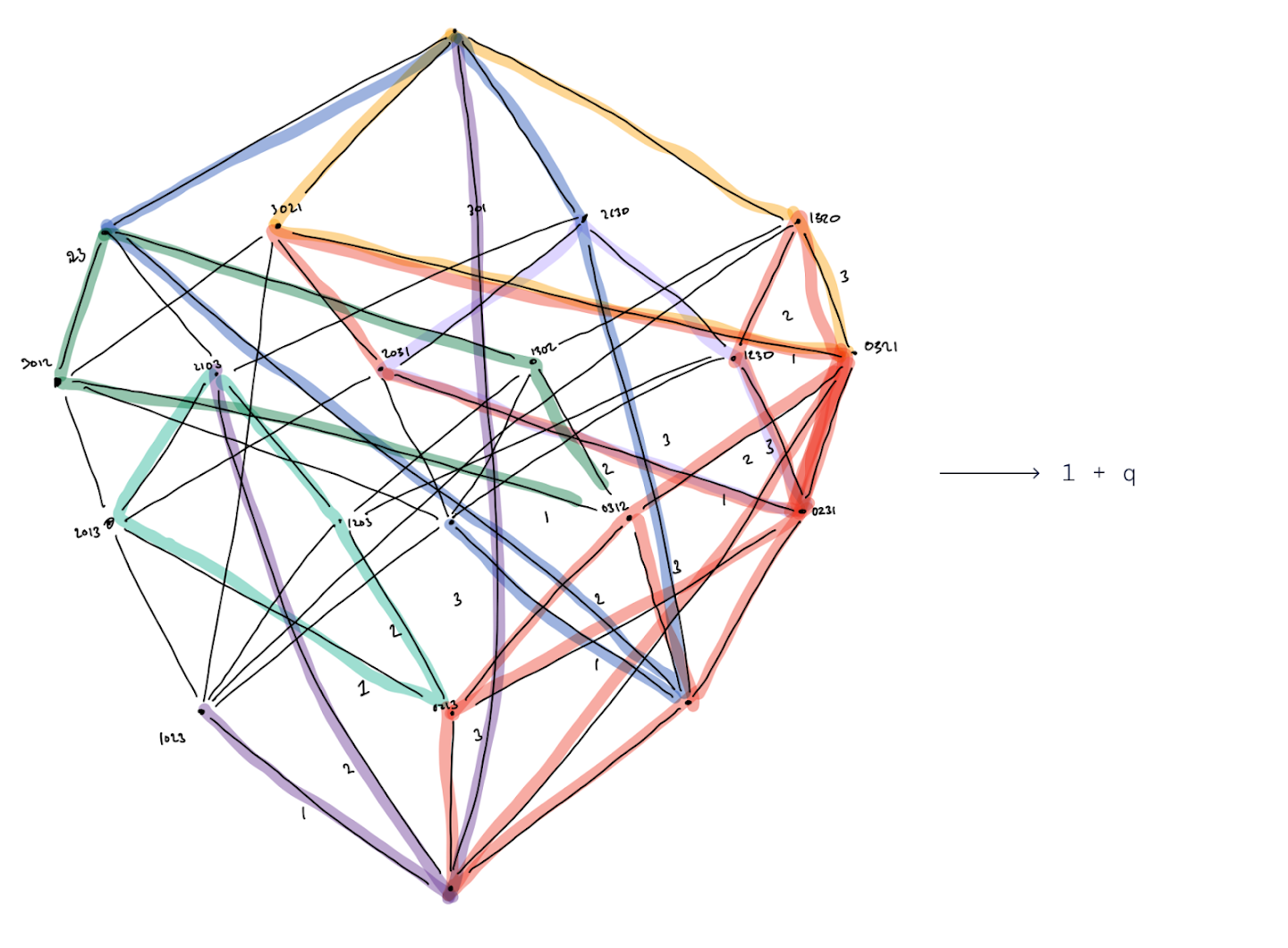 We investigated whether ML could shed light on relationships between different mathematical objects. Shown here are two “Bruhat intervals” and their associated “Kazhdan-Lusztig polynomials” - two fundamental objects in representation theory. A Bruhat interval is a diagram that represents all the different ways you could reverse the order of a collection of objects by only swapping two of them at a time. The KL polynomials tell mathematicians something deep and subtle about the different ways that this graph can exist in high dimensional space. Interesting structure only starts to emerge when the Bruhat intervals have 100s or 1000s of vertices.