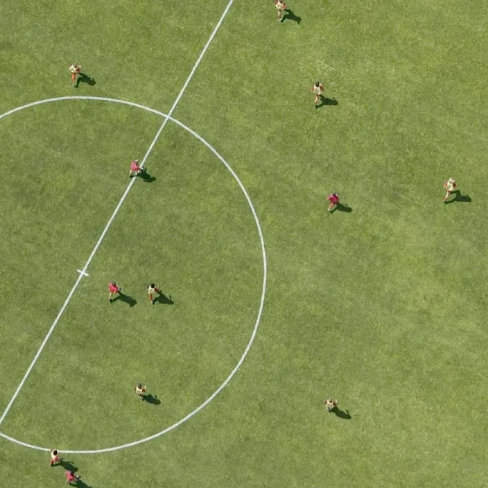 An agent learning to play football competitively using multi-agent RL.