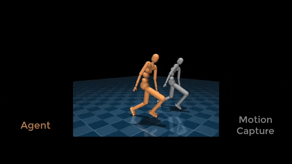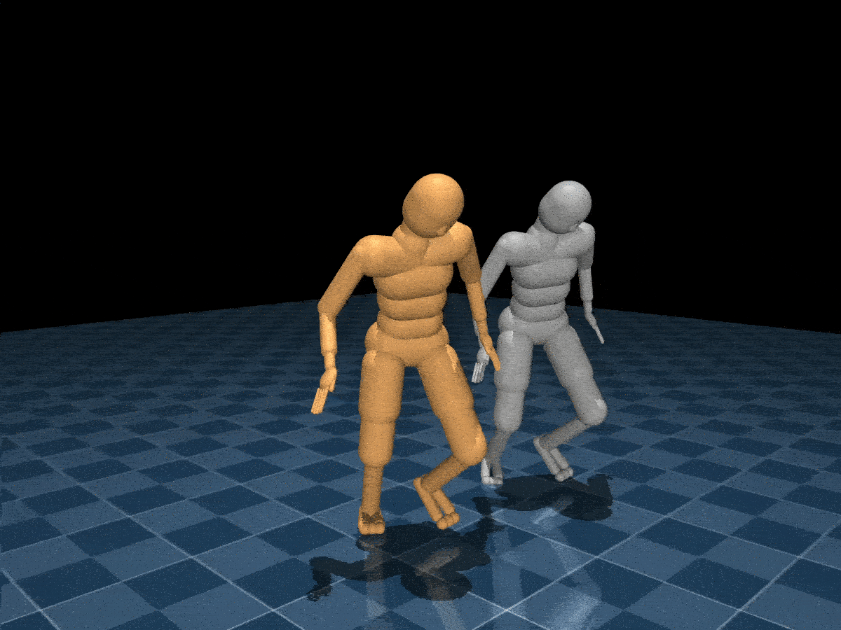 An agent learning to imitate a MoCap trajectory (shown in grey).
