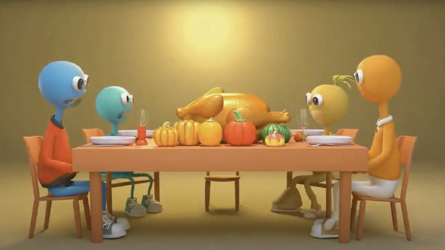 Prompt for audio: Music, Transcript: “this turkey looks amazing, I’m so hungry”