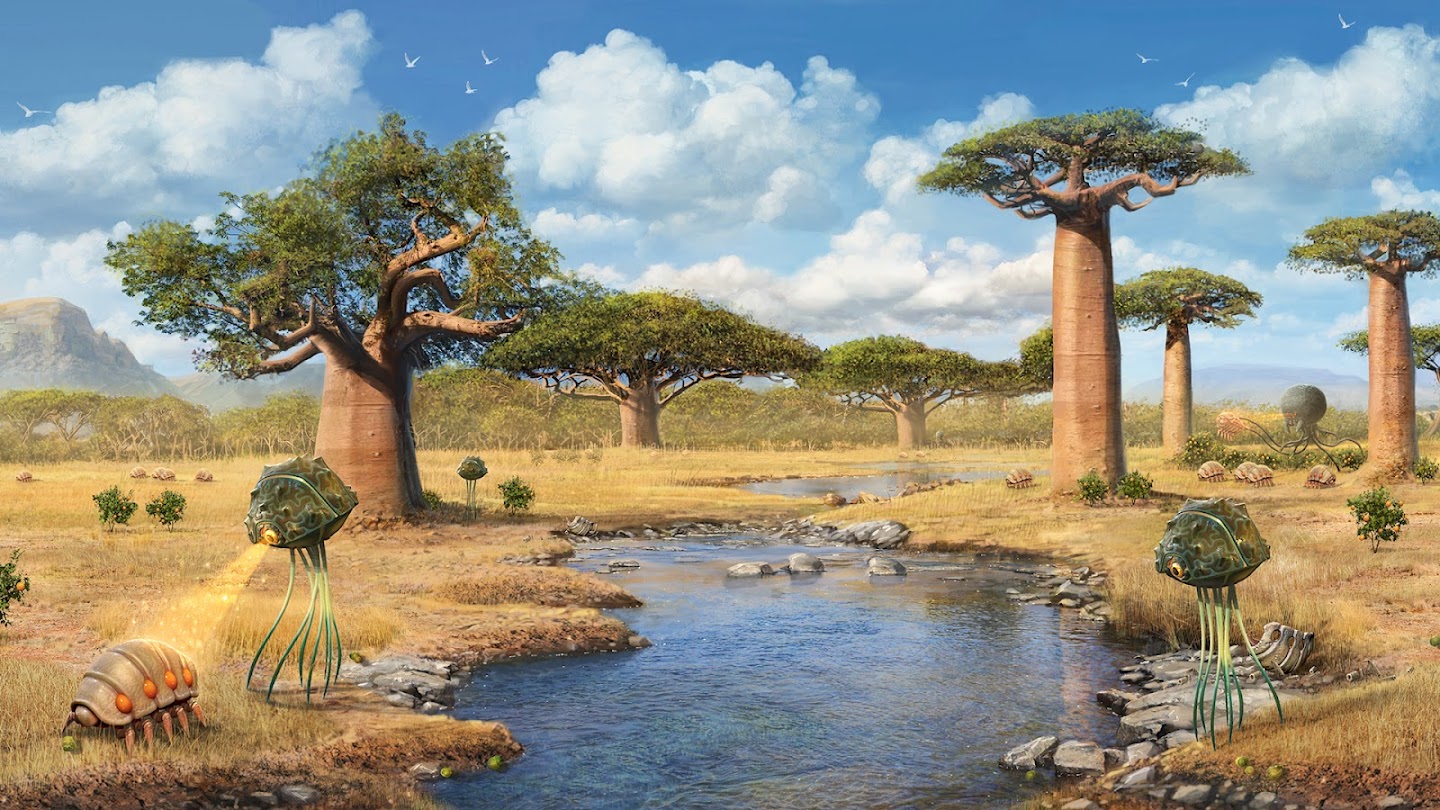 Genie 2 can also be prompted with real world images, where we see that it can model grass blowing in the wind or water flowing in a river.