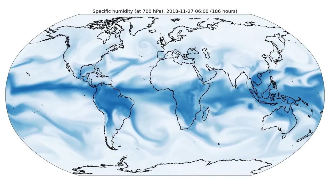 GraphCast can also characterize atmospheric rivers – narrow regions of the atmosphere that transfer most of the water vapour outside of the tropics. The intensity of an atmospheric river can indicate whether it will bring beneficial rain or a flood-inducing deluge. GraphCast forecasts can help characterize atmospheric rivers, which could help planning emergency responses together with AI models to forecast floods.