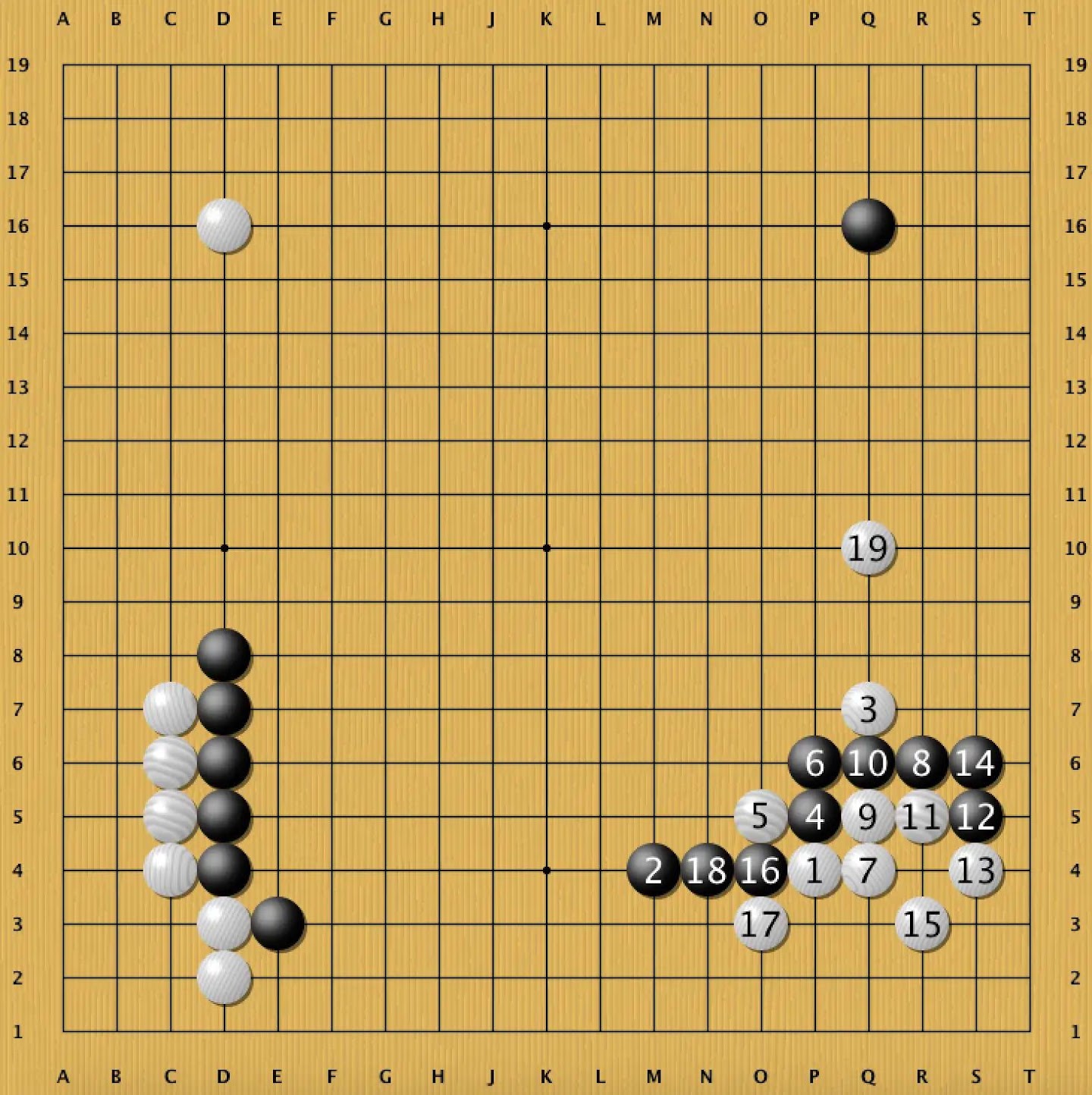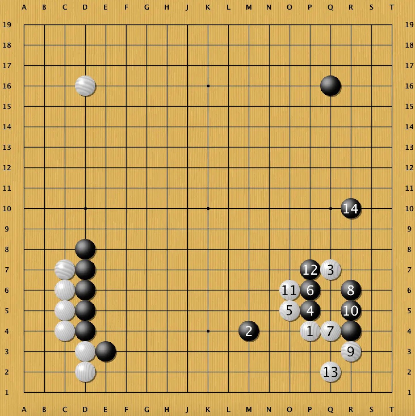 Most Go players would not consider playing this variation, as it gives Black a powerful wall, but White's follow-up approach declares that Black's influence is not as valuable as it looks. If Black does not reinforce the wall, it may even become a target. Kim Jiseok, one of Korea's top professionals, recently played this line in a tournament game (Dia. 10), which he went on to win.