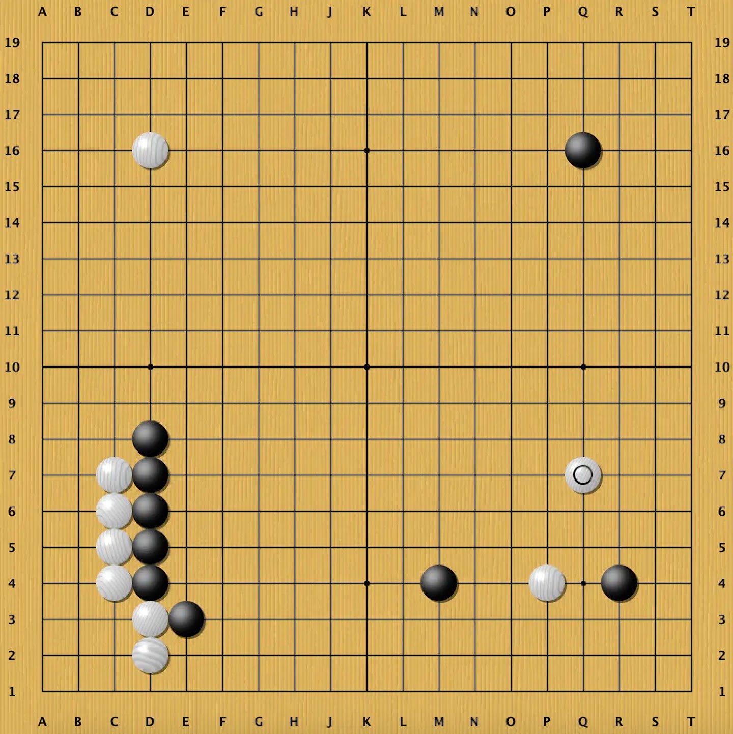 Originally trained on human data, AlphaGo knows modern joseki and usually plays accordingly. However, in the "Magic Sword," a famously complex joseki family named for the cursed sword of Muramasa, it diverges.