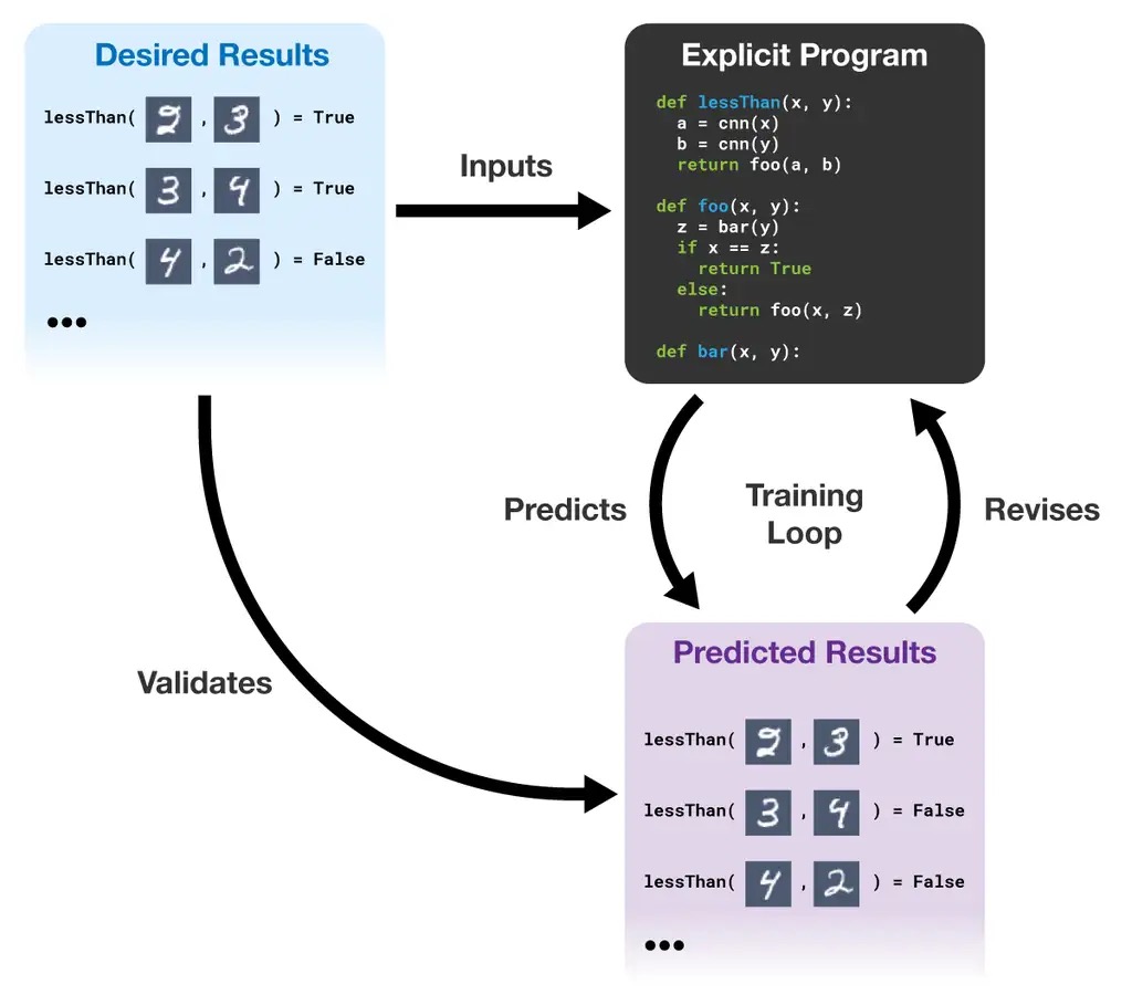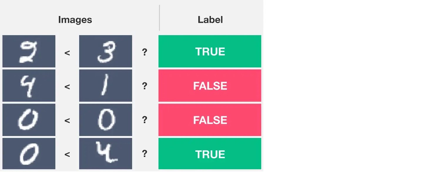 We demonstrate how ∂ILP works with an induction task. It is given a pair of images representing numbers, and has to output a label (0 or 1) indicating whether the number of the left image is less than the number of the right image. Solving this problem involves both kinds of thinking: you need intuitive perceptual thinking to recognise the image as a representation of a particular digit, and you need conceptual thinking to understand the less-than relation in its full generality.