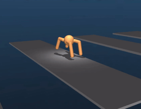 A simulated 'ant' walker learns the precise movements required to jump between planks.