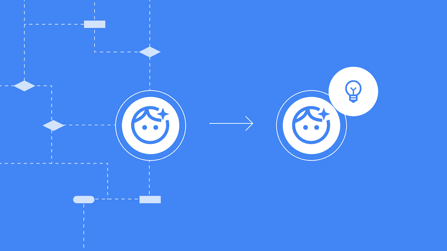Illustration of an AI assistant and a person communicating in a human-like way.