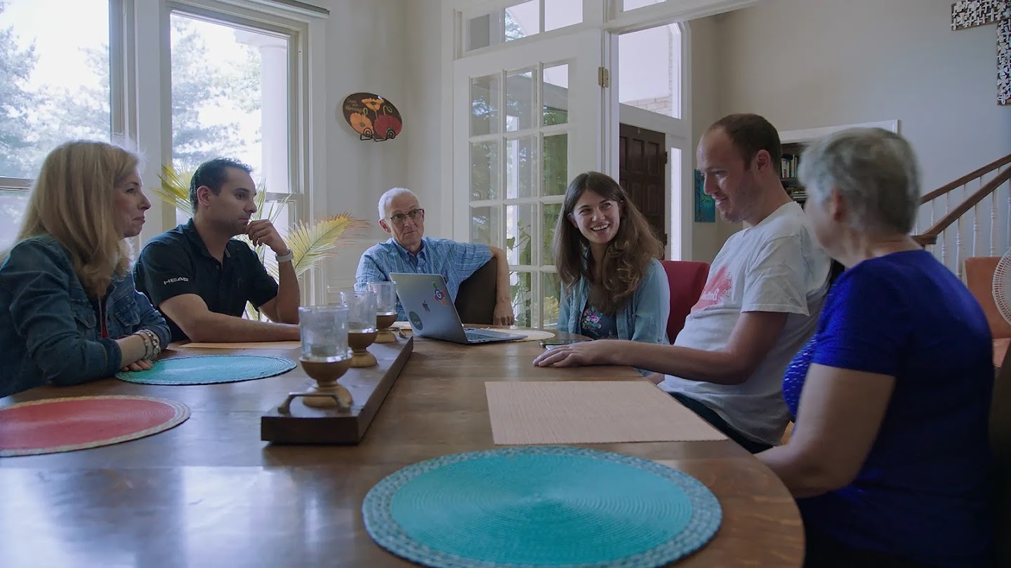 Tim and his family chat with some of the team members working to build better technologies for people with impaired speech