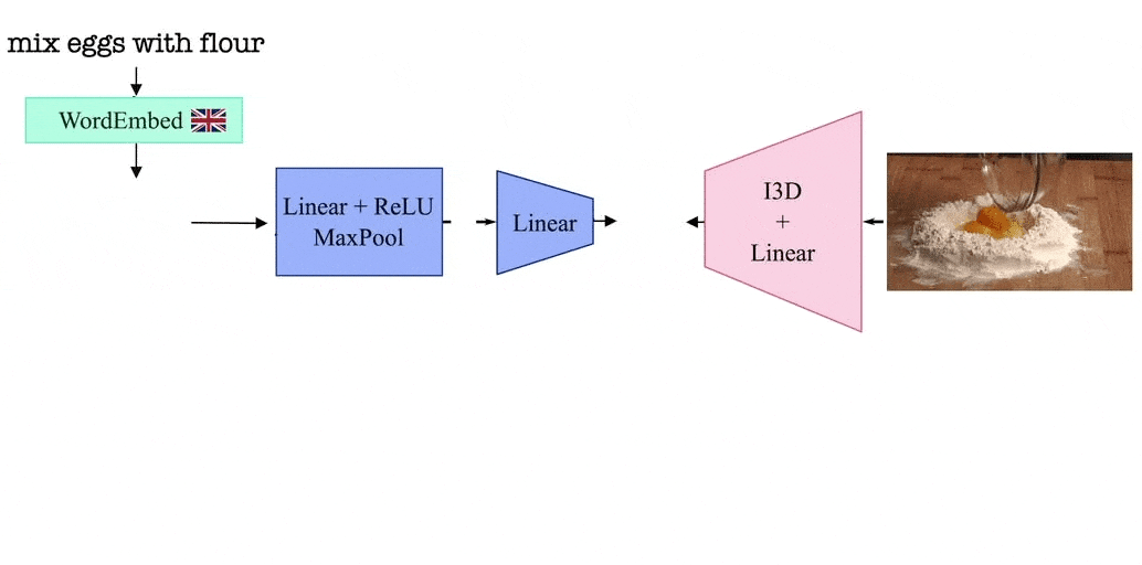 Our model leverages the visual similarity of videos by associating videos with their corresponding narrations in a shared embedding space between languages. The model is trained by alternating between videos narrated in one language and those in the second language. Thanks to such a training procedure, and since we share the video representation between both languages, our model learns a joint bilingual-visual space that aligns words in two different languages.