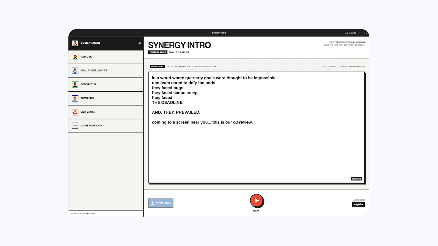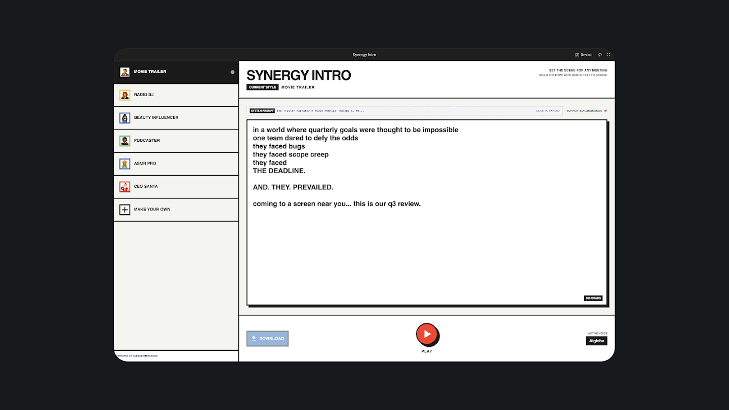 Craft anything from short snippets to long-form narratives, with granular control over style, tone, and performance.