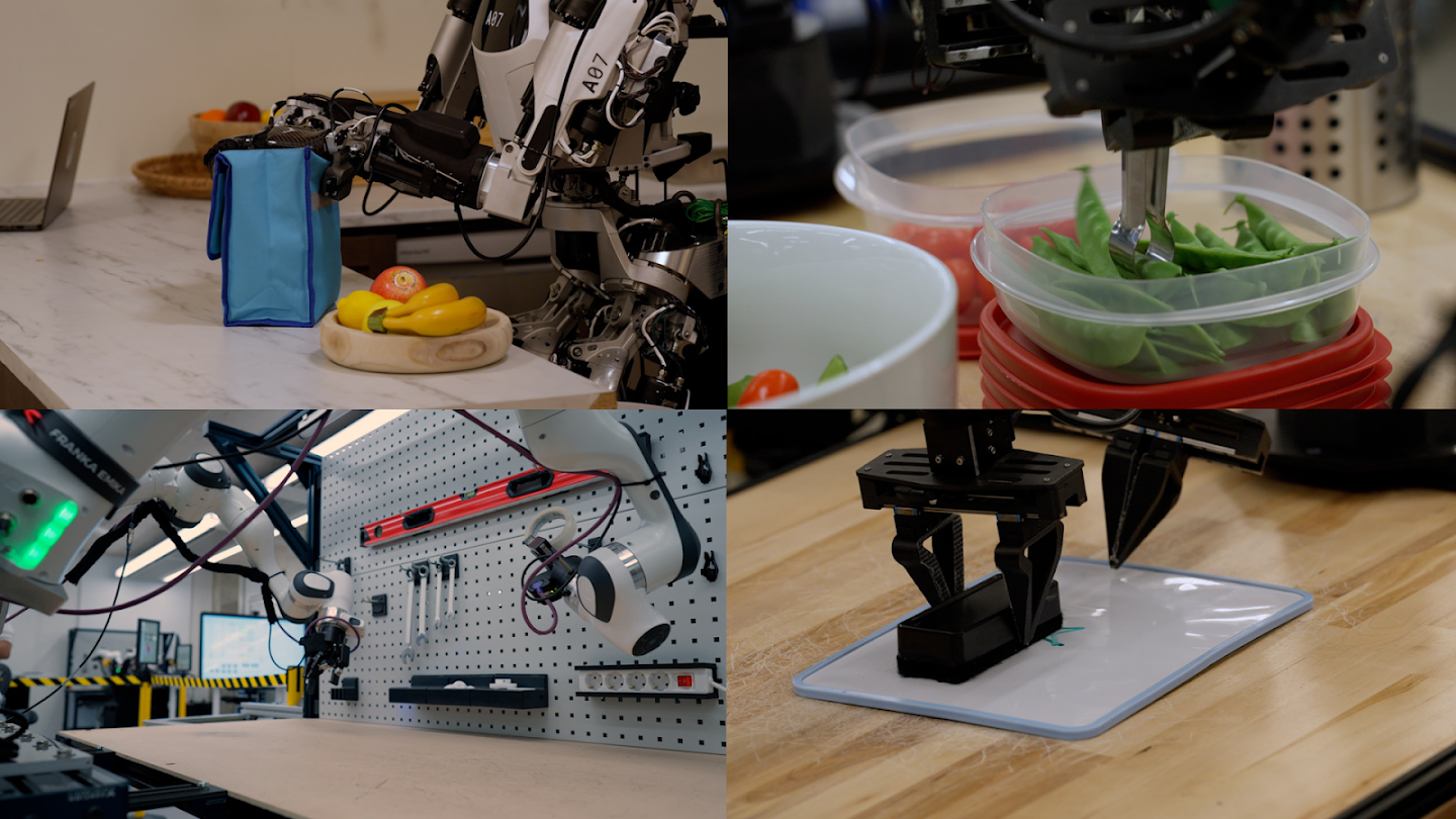 Adapts to a diverse array of robot forms, from bi-arm static robotic platforms like ALOHA and Bi-arm Franka, to humanoid robots like Apptronik’s Apollo. A single model can be used across all these robots, in turn accelerating its learning across multiple embodiments.