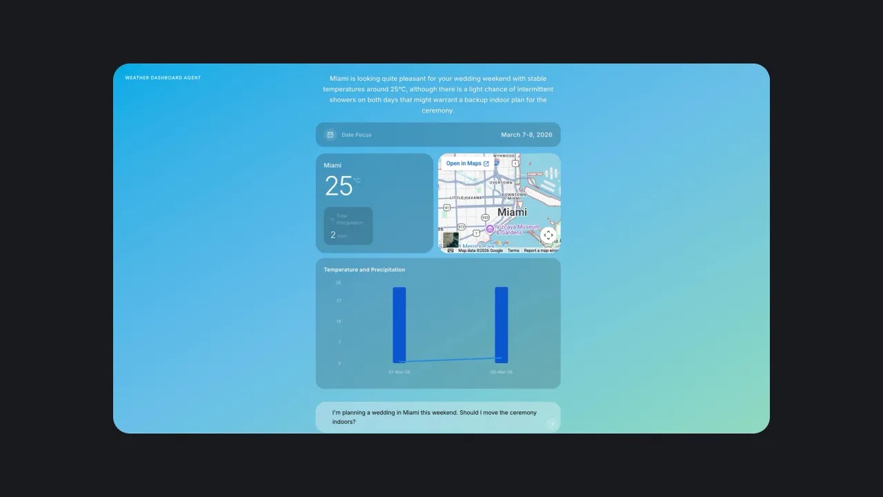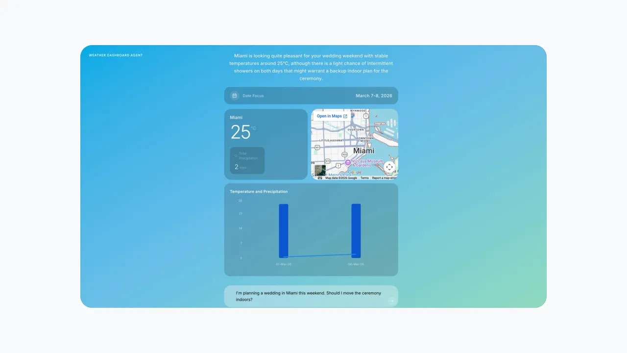 Gemini 3.1 Flash-Lite builds live weather dashboards on demand, pulling real-time forecasts and historical data into dynamic visualizations.