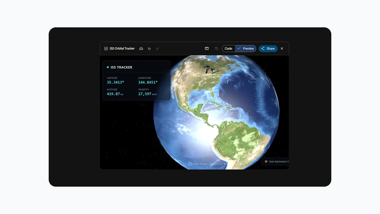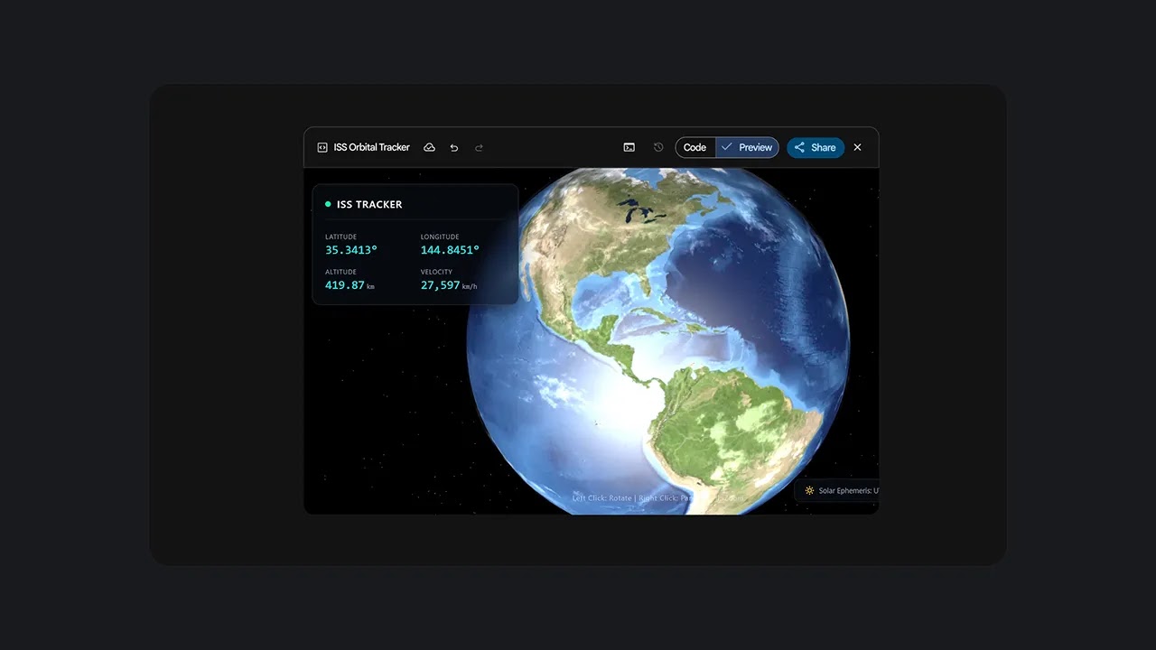 Gemini 3.1 Pro uses advanced reasoning to configure live telemetry streams to build dynamic applications like this aerospace dashboard.
