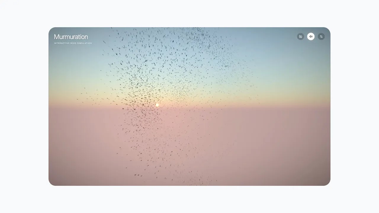 Gemini 3.1 Pro codes an immersive starling murmuration, complete with hand-tracking manipulation and dynamic generative audio.