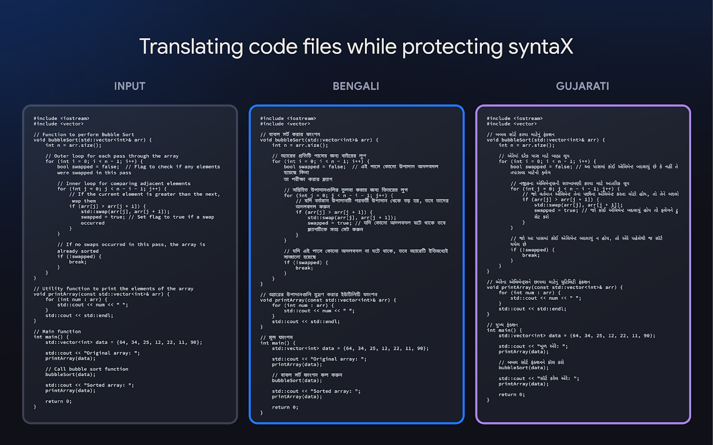 Example of Sarvam-Translate translating code and preserving its functionality.