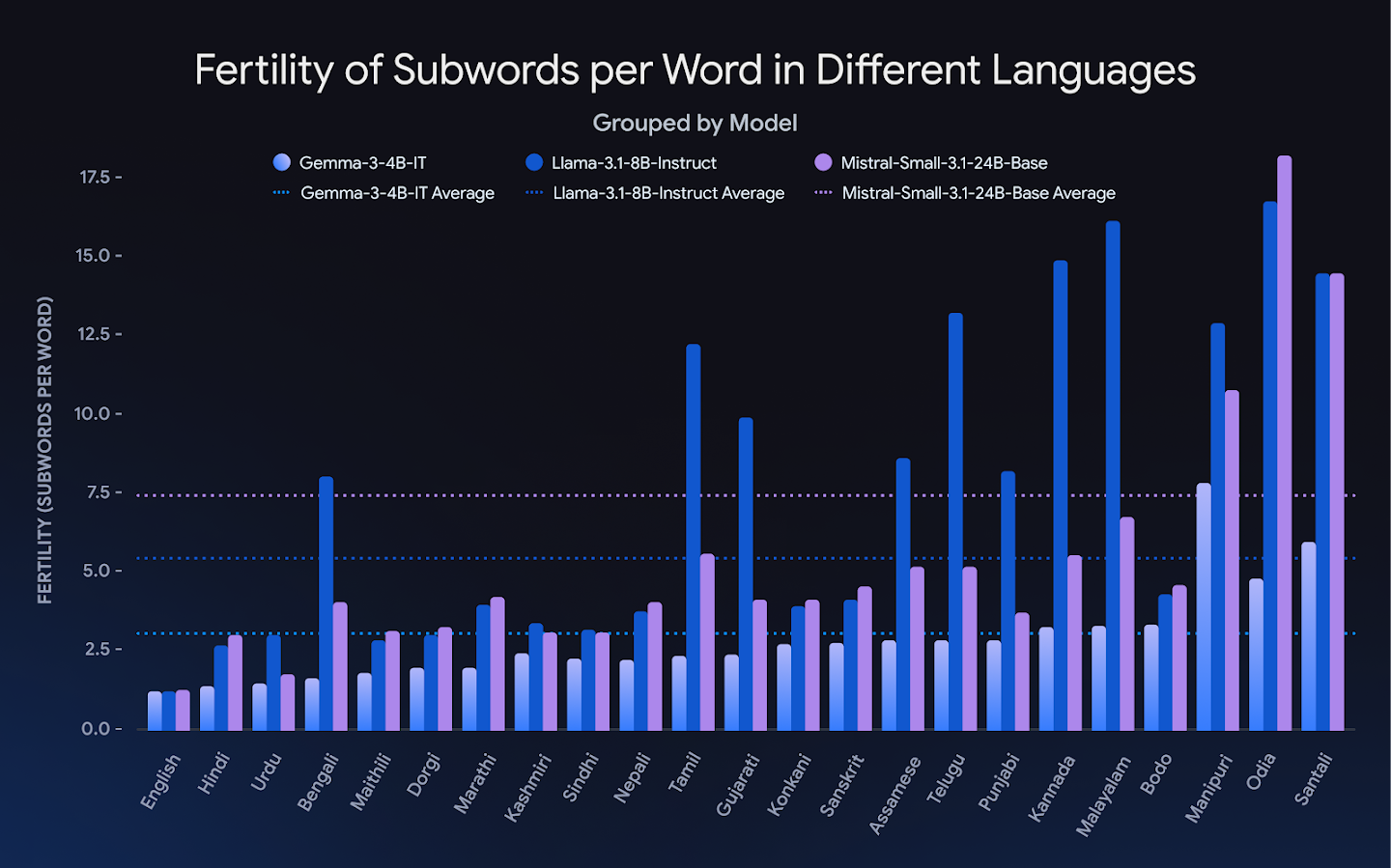 [Gemma] breaks down Indian language text into fewer tokens on average, which directly improves the model’s ability to represent and learn from these languages efficiently.